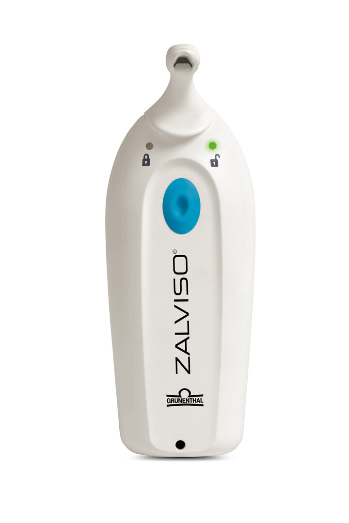 Zalviso is an innovative, pre-programmed, non-invasive, handheld system that allows adult hospital patients with acute moderate to severe post-operative pain to self-dose with sufentanil sublingual tablets to manage their pain. The dispenser was designed to allow for convenient sublingual application of sufentanil, while the controller is kept plain and simple to ensure intuitive and easy usage by patients.