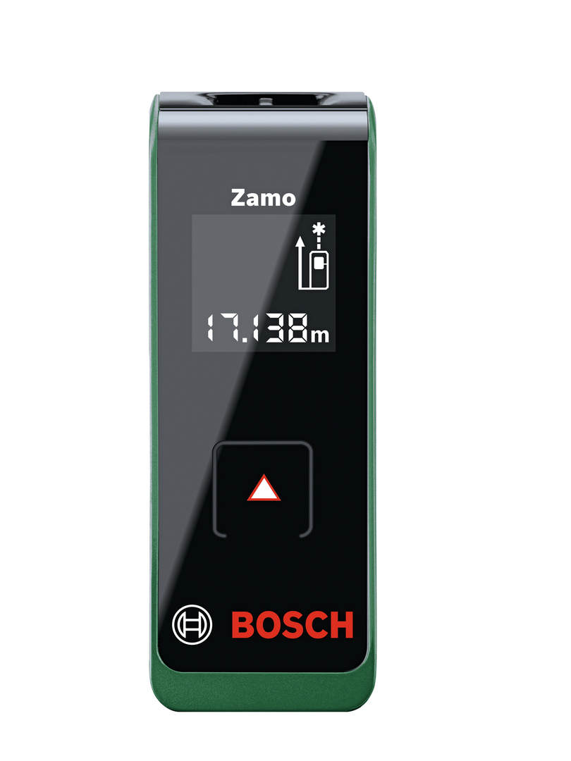 The Zamo laser measure calculates distances using a convenient one-button control concept. The design of the second generation is modelled on the modern environment of consumer electronics in order to appeal to a larger target group. Nonetheless, the positioning of the company logo on the upward facing side of the tool creates a clear connection with the brand. All important mea-surement data are presented on the display and can thus be grasped at a glance.