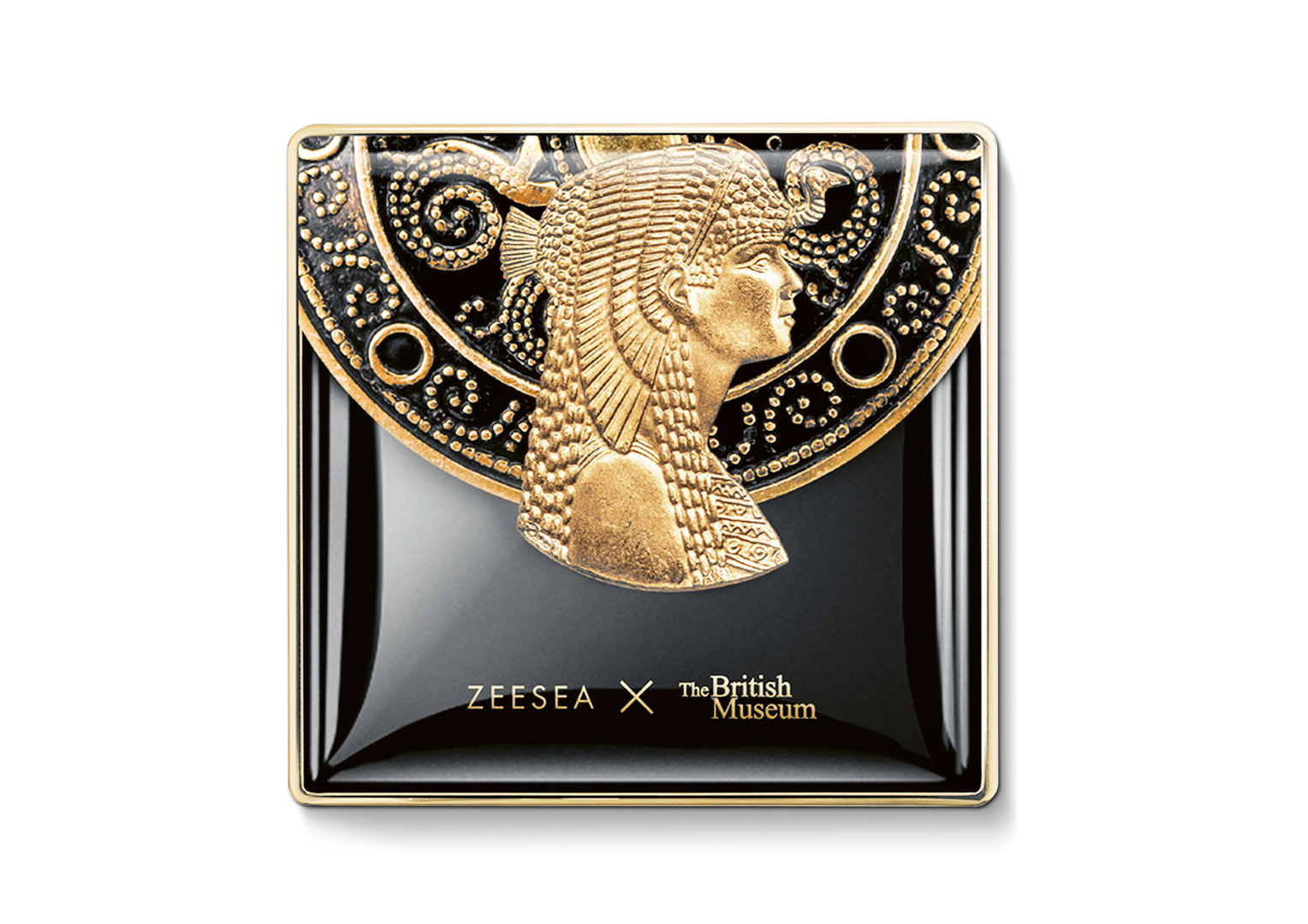 The design of this compact face powder case, created jointly by cosmetics manufacturer ZEESEA and the British Museum, is inspired by the aesthetics of ancient Egyptian art. The black, high-gloss design of the lid is in sharp contrast with its gold-coloured profile decoration. It shows the goddess Hathor, who, in Egyptian mythology, symbolises prosperity, generosity and benevolence alongside beauty. The exquisite powder case with its elegant appearance has a square shape and an intentionally compact design, making it easy to carry along.