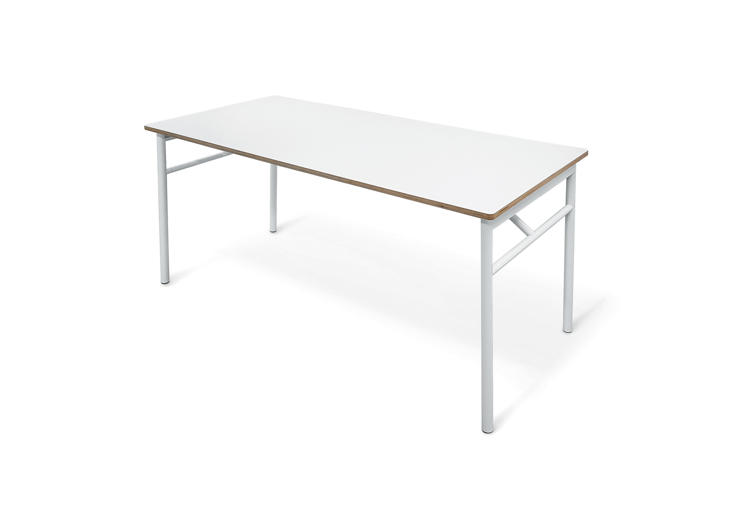 This folding, multipurpose table is intuitive to assemble without the need for tools. The folding mechanism is activated through a simple one-touch technique. It slides the legs along rails from the horizontal to the vertical position. When they reach an angle of 90 degrees, they lock into place and are easily unlocked by pressing a snap button. The white tabletop is made of a robust, scratch-resistant HPM (High Performance Material). The table has a modern appear-ance and is suitable for indoor and outdoor use.