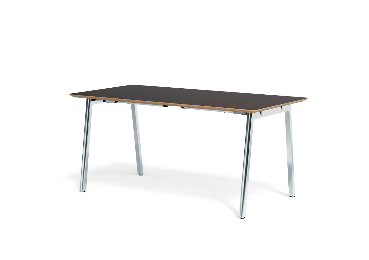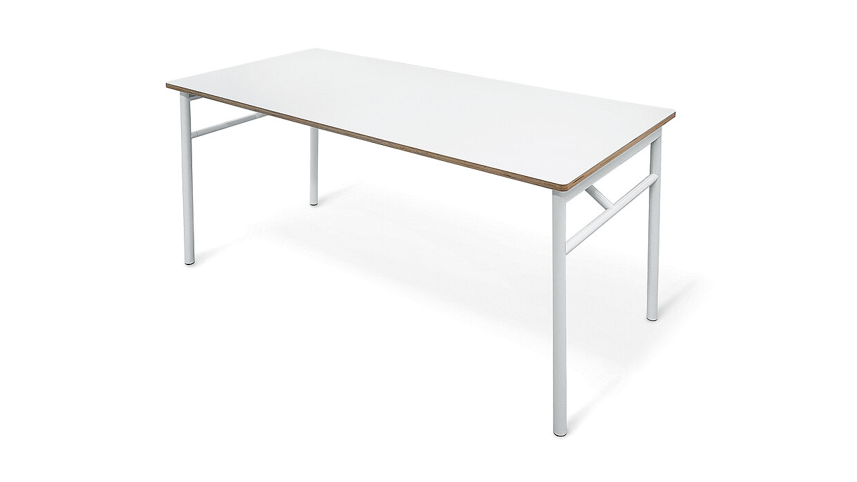 This desk has a scratch-resistant tabletop made of a robust HPM (High Performance Material) and is specially designed for home office use. Folded and packed flat, it is easily transported and stored. In contrast to conventional models, this desk requires no tools for assembly. The lever mechanism to fold the legs up or out can be intuitively operated by hand. It was inspired by the levers used to secure bike saddles.