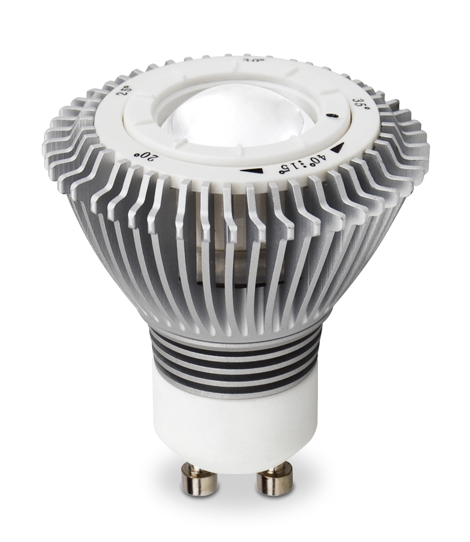 The innovative feature of this aluminium LED lamp is its zoom function with adjustment ring, which allows individual settings of the beam angle from 15 to 40 degrees – the lamp thus perfectly meets the various requirements of a light source. In addition, the LED lamp is dimmable from 10 to 100 per cent. It is available with MR16 mount or GU10 pin base. The energy-saving lamp with a power consumption of only four watts has a long lifespan of up to 30,000 hours.