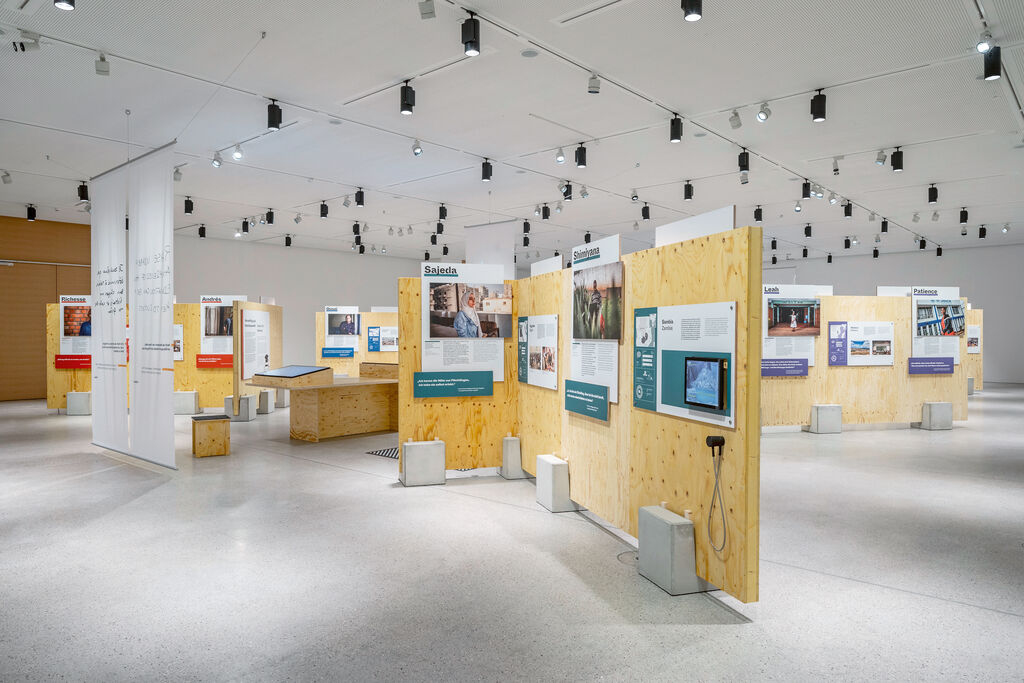This exhibition tells the stories of 25 refugees in higher education. Visitors learn about their dreams, successes, challenges and concerns. Through a game, they can reflect on the meaning of education for themselves. Humorous illustrations create a jovial atmosphere without detracting from the seriousness of the individuals’ struggles.