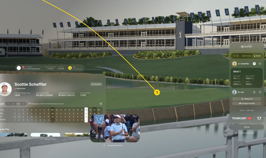 PGA TOUR Vision is part of the PGA TOUR digital ecosystem and offers a new fan experience in conjunction with the Apple Vision Pro. PGA TOUR Vision breaks away from the limitations of flat surfaces to enable interaction and create intuitive, immersive moments that blend physical experiences and digital content.