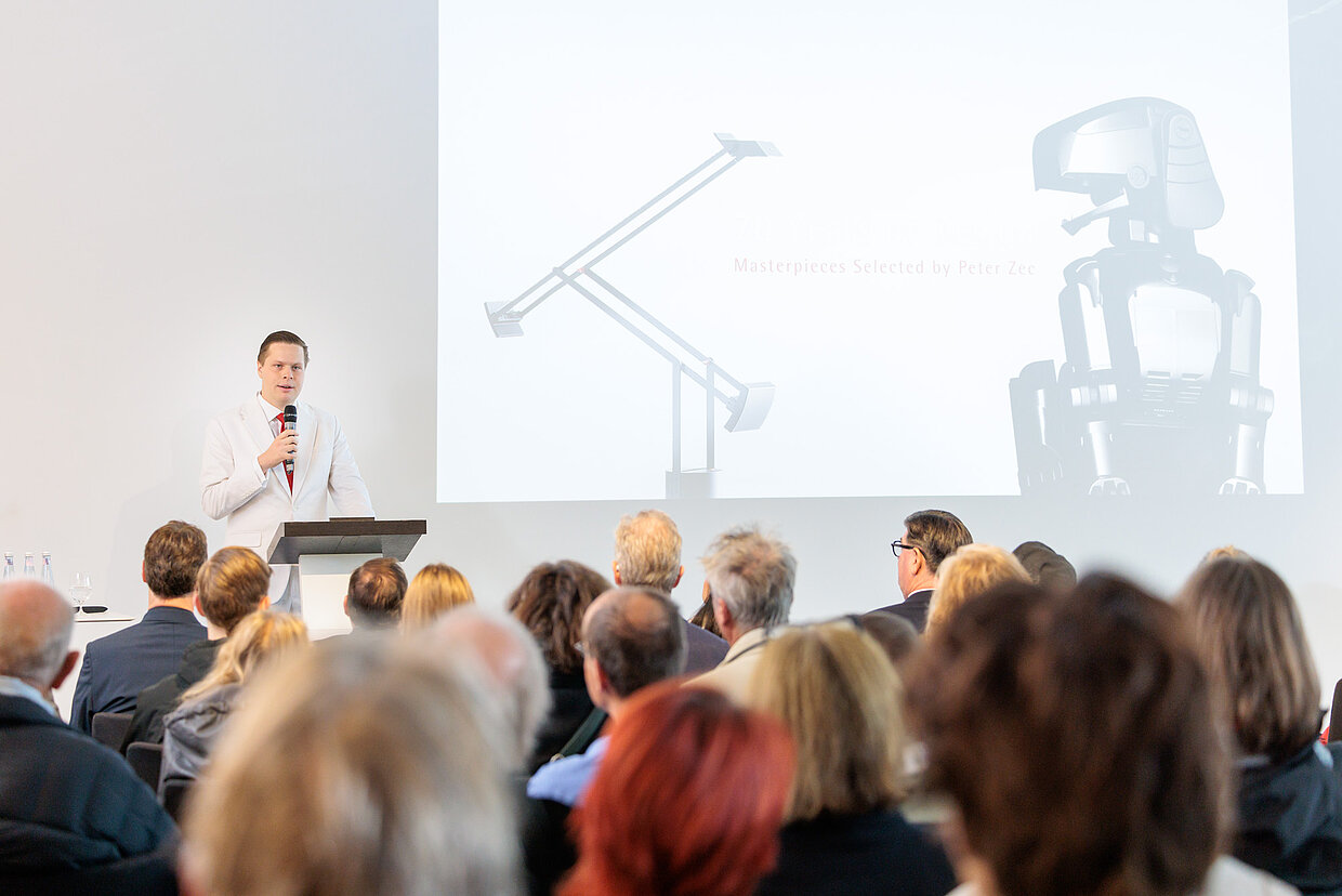 Die Ausstellung wurde am 5. Oktober 2025 mit einer Matinee eröffnet. Professor Dr. Peter Zec begrüßte die Gäste und warf einen persönlichen Blick auf sieben Jahrzehnte Designförderung.