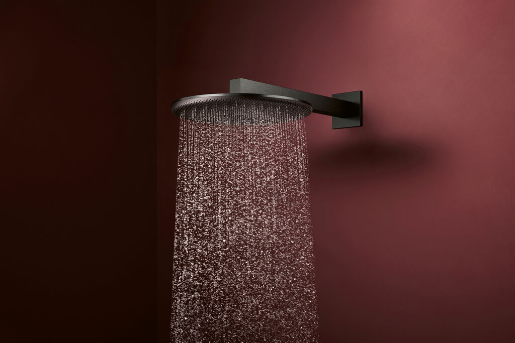 Widersprüche sind eine gute Grundlage für den Gestaltungsprozess. Unser Ansatz war, ein Duscherlebnis zu schaffen, das inspiriert und zu einem positiven Umgang mit Wasser beiträgt. Die Auseinandersetzung mit dem Medium Wasser sowie die Entwicklung neuer Strahlarten sind für uns seit jeher zentral. Dieses Wissen mündete in eine innovative Düsentechnologie, bei der die Düse ihren Durchmesser den örtlichen Druckverhältnissen anpasst, sodass der Wasserstrahl effizient und mit gutem Druck auf die Haut trifft. So wird jeder Tropfen zum Erlebnis – obwohl der Wasserverbrauch im Vergleich zur ersten Raindance-Generation nahezu halbiert wurde.