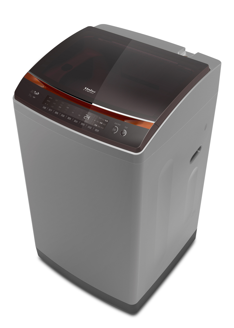 The streamlined, cambered surface of this pulsation washing machine with its concise lines and the reinforced glass cover gives a rugged and simultaneously very elegant impression. The control panel is located in the front part of the top. A large magic mirror display and the touch-operated user interface give the washing machine a highly technical feel and yet assure simple operation. A three-dimensional ripple pattern on the recessed grip produces changing light effects according to viewing angle.