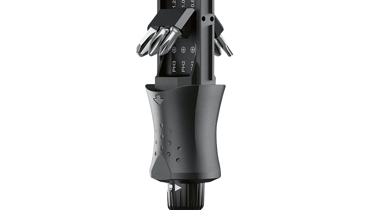 The screwdriver impresses with its distinct, colour-coded surfaces. The well-proportioned handle provides a secure grip.