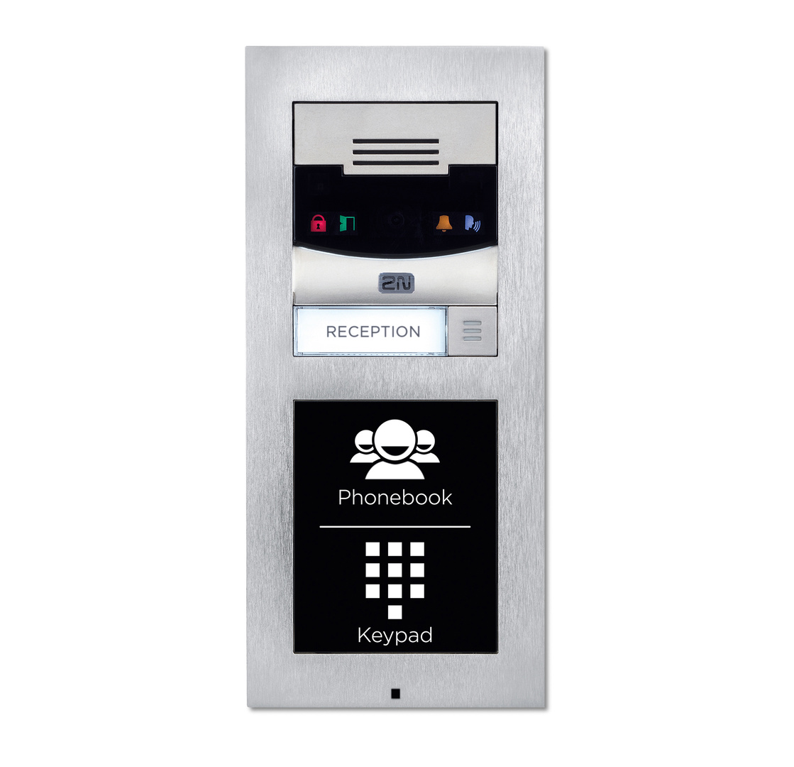 The security intercom system 2N Helios IP Verso features an intuitive touchscreen, card reader and discreet camera with infra-red light and night vision. The metal construction is resistant against strong temperature fluctuations and sudden weather changes. The system is supplemented by the 2N Indoor Touch intercom which features a clearly structured touchscreen and an integrated video camera. The moment the bell is rung, the video image of the entrance appears on the colour monitor.