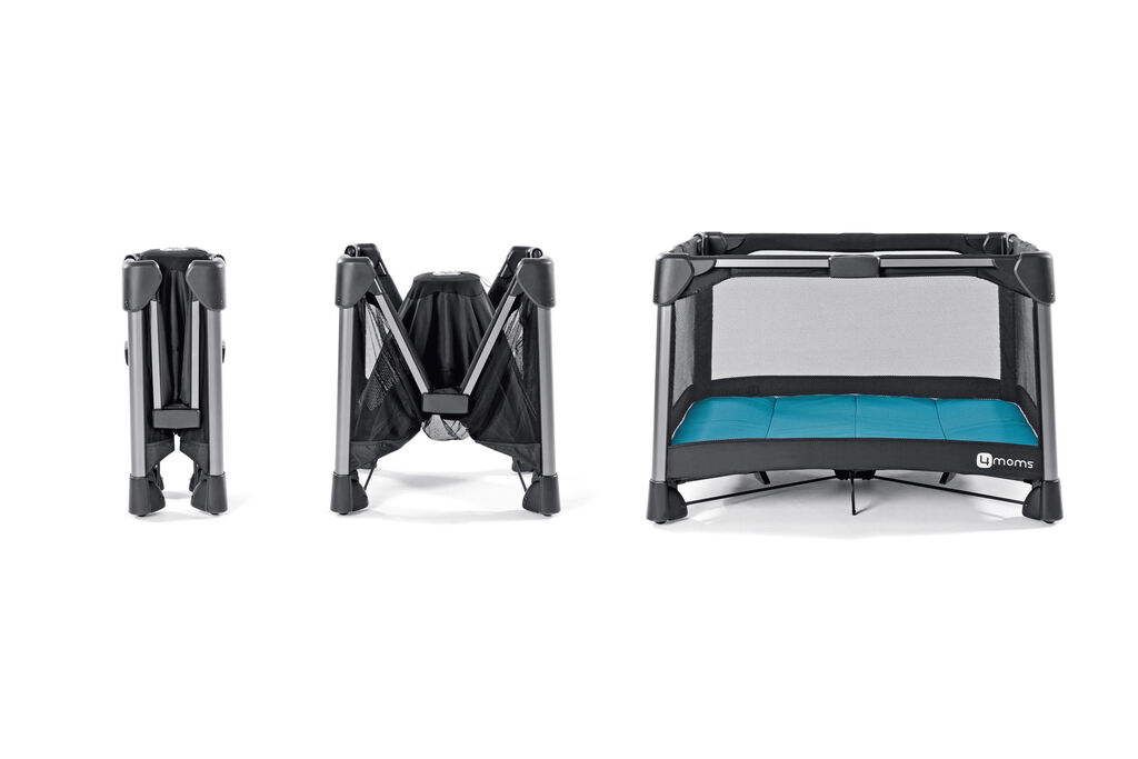 The consistent functionality of the 4moms breeze facilitates both easy set up and convenient portability. The bottom central folding release is the highlight of the product. The ability of the play yard to adapt to the growth of the child constitutes another perfect design solution. With its clear and subtly trapezoidal language of form it manages to lend play yards a novel aesthetic.