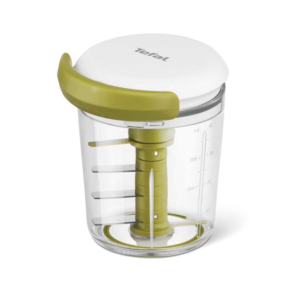 The 5 Sec Chopper Shaker was developed to chop various ingredients quickly and effortlessly. It chops for example onions, chocolate and even nuts into fine pieces, with robust blades made of stainless steel to ensure even chopping results. Equipped with an advanced rotor system, this chopper is operated manually requiring no power. Together with a range of accessories, the kitchen utensil allows for versatile use.