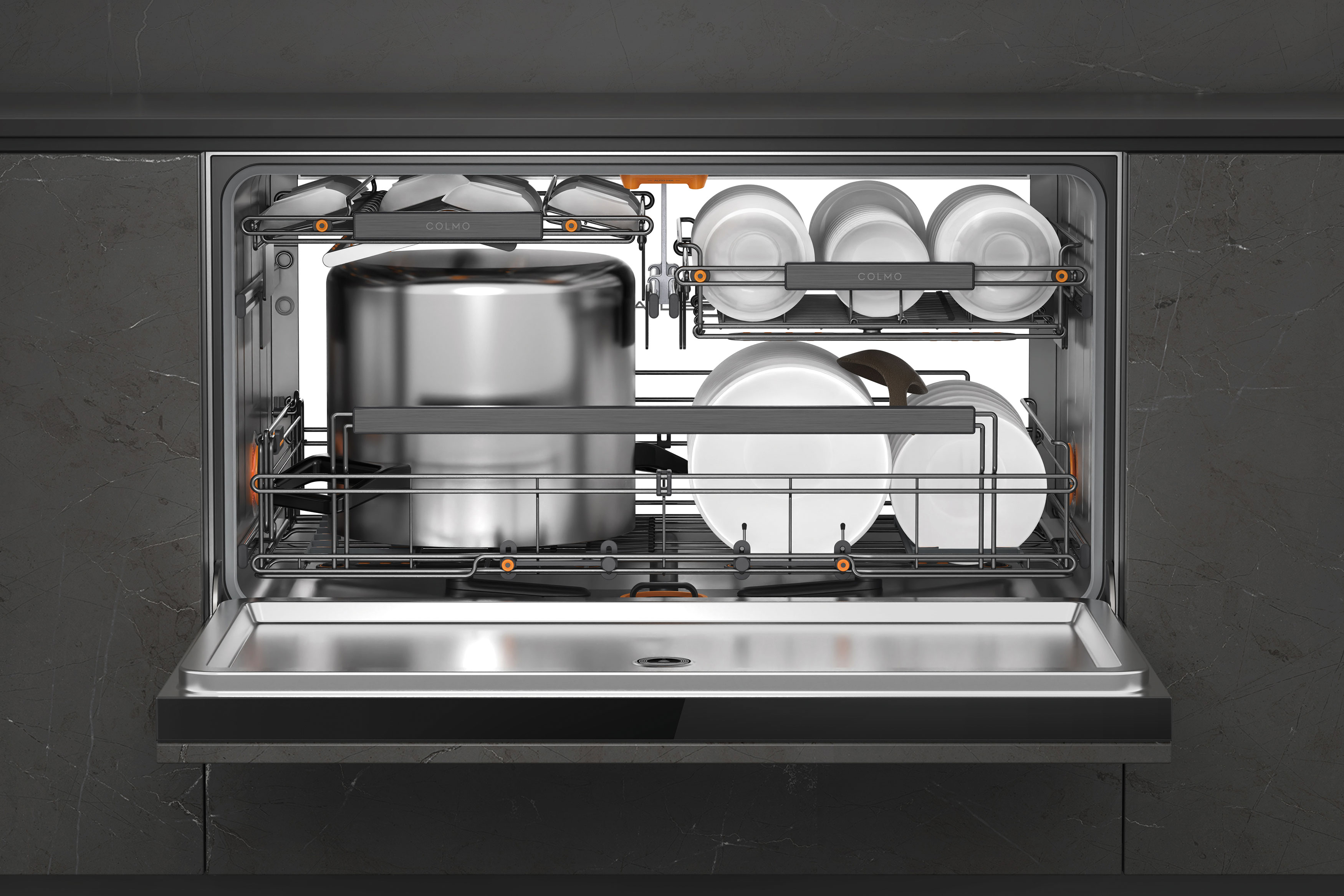 The 900MM WIDE DISHWASHER tackles the challenge of fitting large pots and pans used in Chinese cooking and Western tableware. It features an innovative ‘Flexible Folding Dish Rack’ mechanism, which allows the dish rack to flexibly fold and transform, freeing up internal space for large woks and stockpots. This system also adapts to tall cups, making it compatible with both Chinese and Western tableware and ensuring an optimal loading experience.