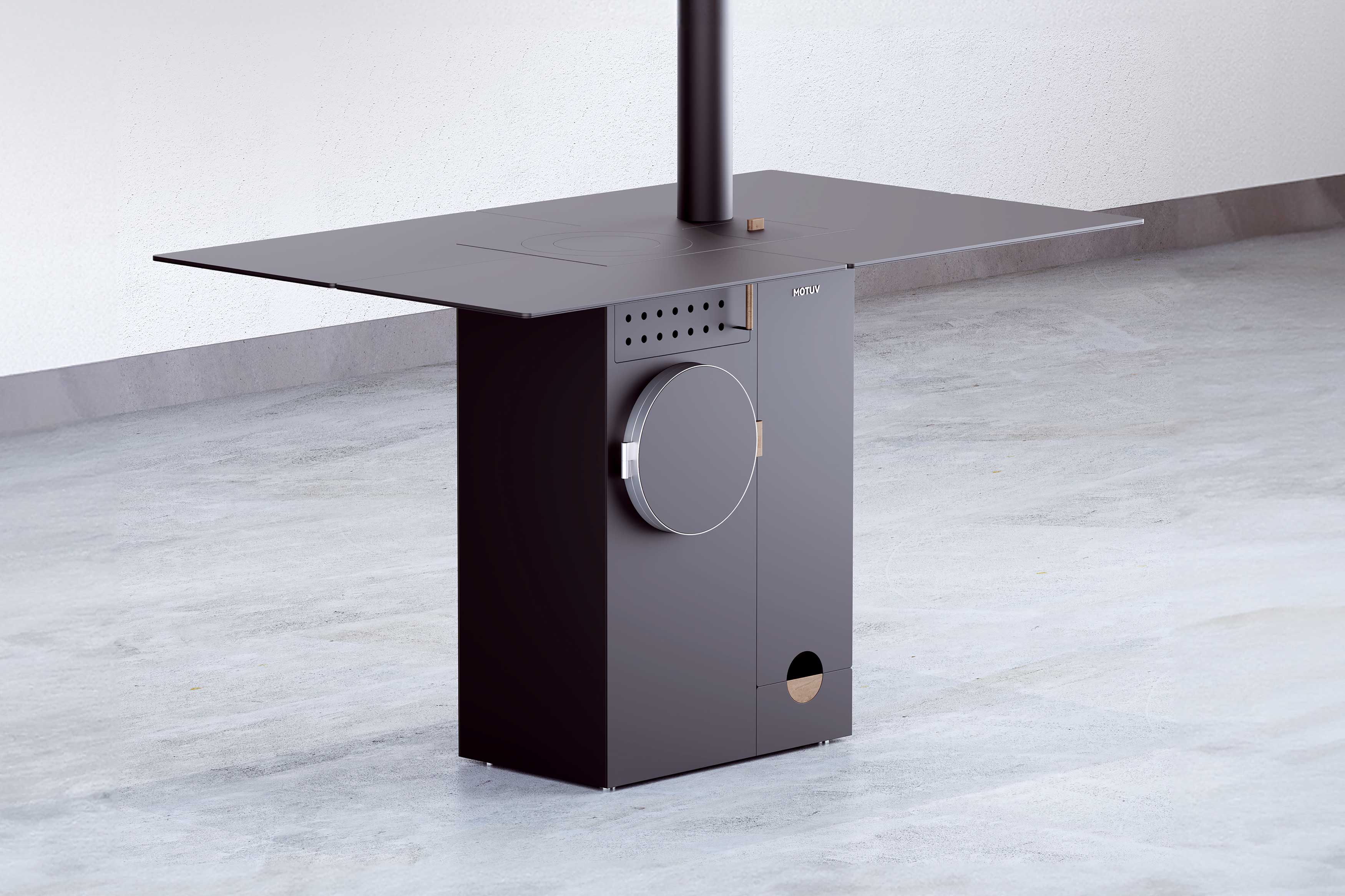 The miniature charcoal kiln can be loaded with materials like rice husk, wood, or bamboo to produce wood gas for the second combustion. This extends the burn time and reduces the frequency of adding more fuel. The biochar produced also has economic value. In addition, this stove features an oven and modular tabletop, enhancing the stove’s functionality and convenience. The oven expands cooking options, and the modular tabletop serves as a kitchen island or dining surface.