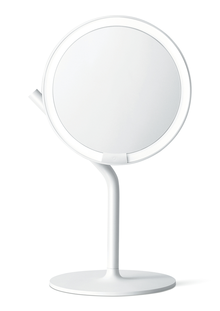 The design of this 6.5-inch mirror translates typical elements of the sunflower into an organic, minimalist shape. The built-in LEDs provide an especially bright reflection of the face while protecting the user’s eyes with a special filter. The mirror uses backlighting similar to that on a smartphone, ensuring that the make-up is reflected in natural colours both indoors and outside. The device even powerfully illuminates “blind spots” on the face.