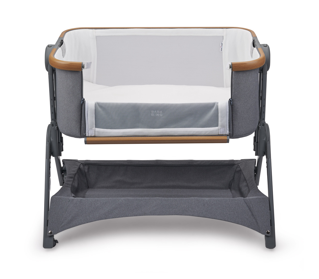 The Bababing Bedside & Travel Crib has been safety tested in accordance with the latest baby crib standards. Other core features include fully lockable wheels, netted sides to improve airflow and breathability, modern wood effect detailing, high quality fabrics and machine washable materials. In addition, the crib has a single-side adjustment to help babies with reflux symptoms.