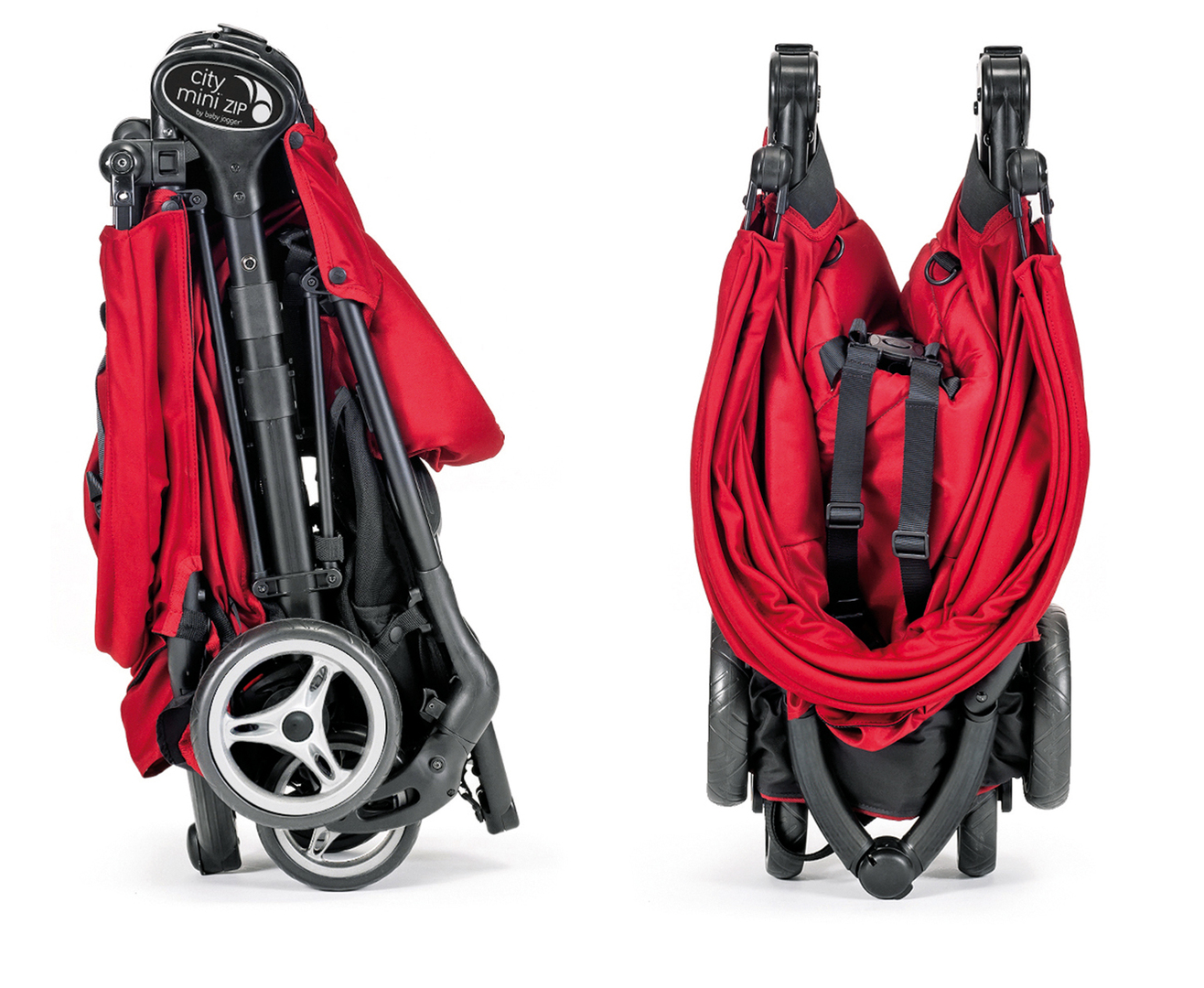 The eye-catching feature of the city mini ZIP is its sophisticated one-hand folding system. By this means, the stroller folds three dimensionally, so that when folded it only takes up an eighth of its original volume. The stroller seat reclines completely and is equipped with a windproof modular cover. A large sun canopy protects from wind and weather and offers UV protection of 50+.