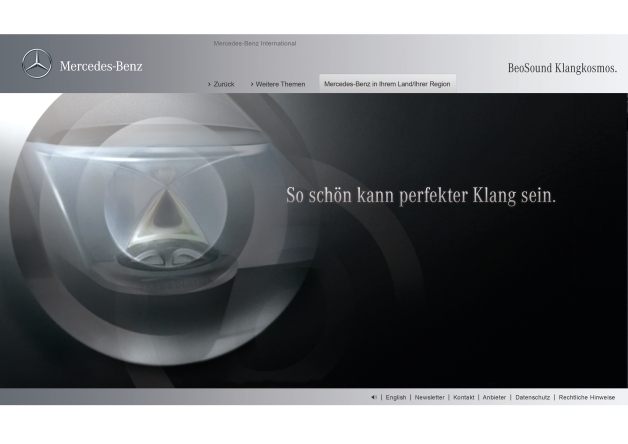 The BeoSound Klangkosmos (BeoSound Sound Cosmos) web special offers the brilliant sound of high-end sound systems to the driver of the Mercedes-Benz S-Class. The musical experience connected to the sound system and the perfection of the sound are visualised via a generative design in real time so that sounds can be felt and emotions can be seen. To experience fascinating sound sculptures in the interior of the S-Class, the user can regulate the intensity of the performance by adjusting volume, treble and bass as well as the selection of the soundtrack.