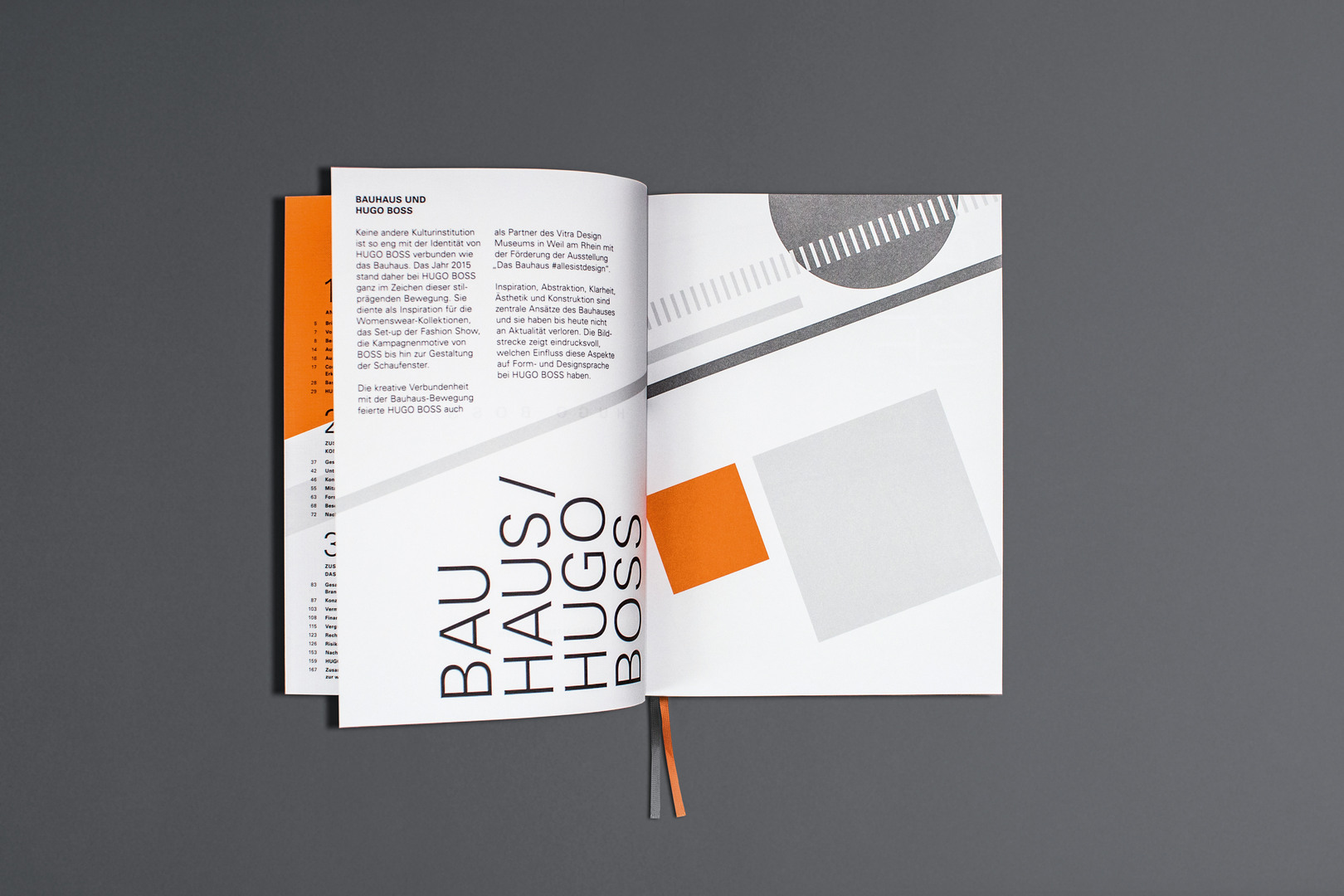The design of this business report is inspired by the maxim of precision, clarity and aesthetic perfection as the central elements of the Bauhaus movement. Alongside implementing cam-paign motifs and window decorations of a collection by artistic director Jason Wu, the key visual elements and colours of grey, orange and white from the “The Bauhaus #itsalldesign” exhibition also inspired the design of the annual report. A playful approach to typography, as well as to the form and colour of basic elements, is in harmony with the visual world of the company.
