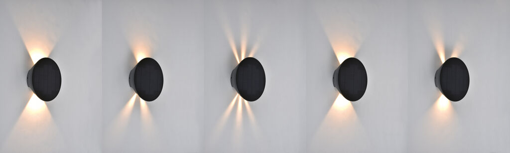 The BELKA solar-powered lamp combines a clear-cut design with environmentally friendly technology. Its up and down light effect enhances the aesthetics of any facade.