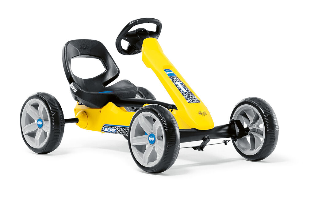 BERG Reppy is a pedal go-kart for children of ages between two and a half and six years old. It is attractive, light and has a compact design. The low positioned bucket seat can be easily adjusted to the body length. Pedalling is smooth thanks to the integrated direct drive, durable 10" EVA tyres and overall low weight of 9 kg. The go-kart is portable due to an integrated handle within the frame and can be easily stored.