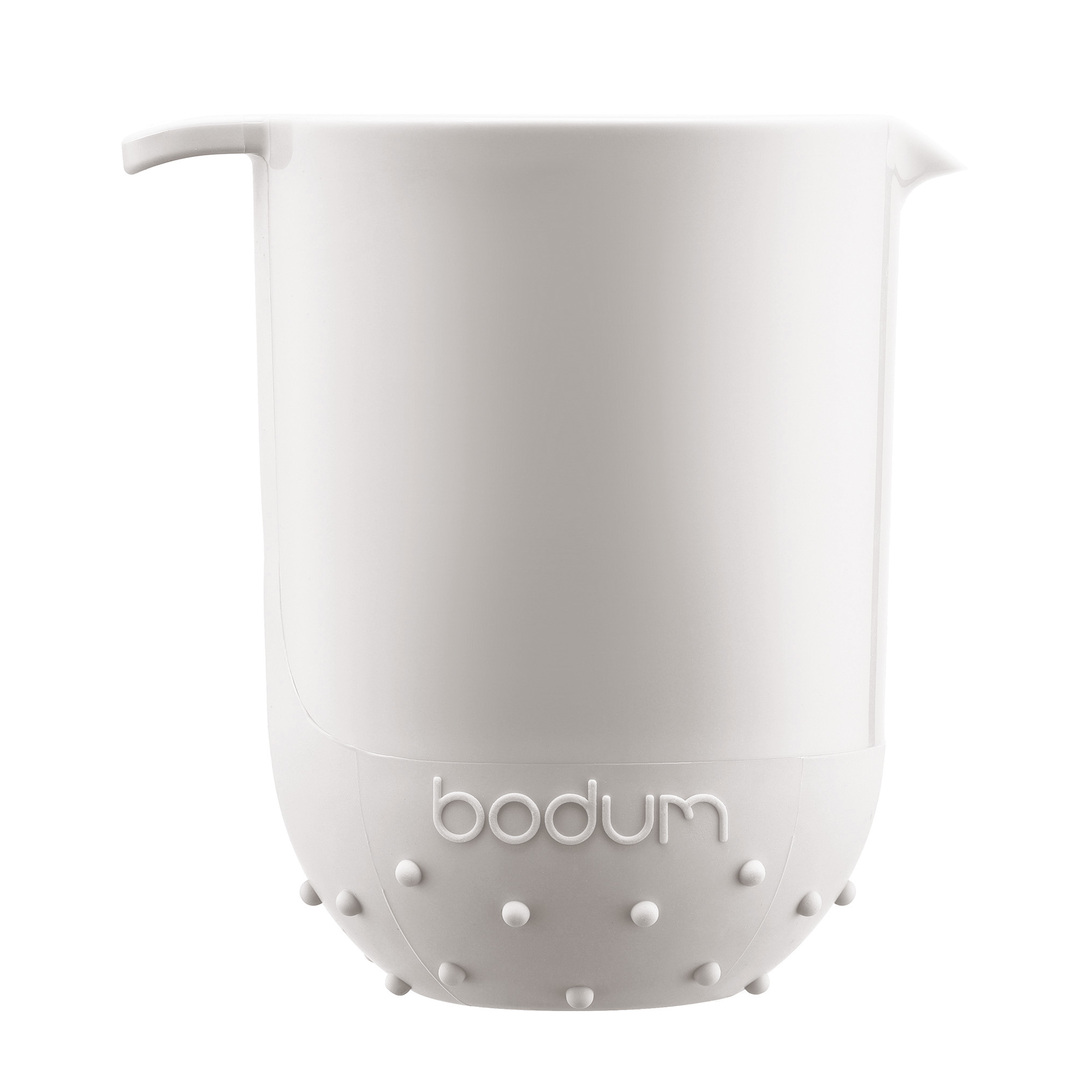 This jug with its high sides is ideally suited for kitchen work which is not performed quite without splashing – for instance when whipping cream or as vessel for pureeing foods. The mixing jug has a capacity of one litre. As with the other models of the series, the jug, thanks to the rubber coating, is slip-free, good to handle and easily cleaned after use.