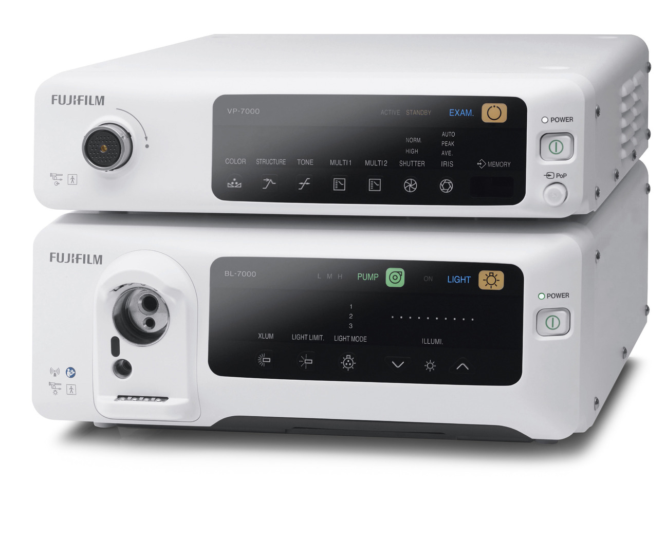 The 4 LED multi-light system BL-7000 uses state-of-the-art, image-optimised endoscopy technology to better visualise mucosal surfaces and vascular structures in the gastrointestinal tract. The video processor VP-7000 provides images and video sequences in full HD quality. With their rounded shape, the consoles are designed for easy cleaning and to reduce patients’ fear of the examination. The LED display against a black background ensures good readability.