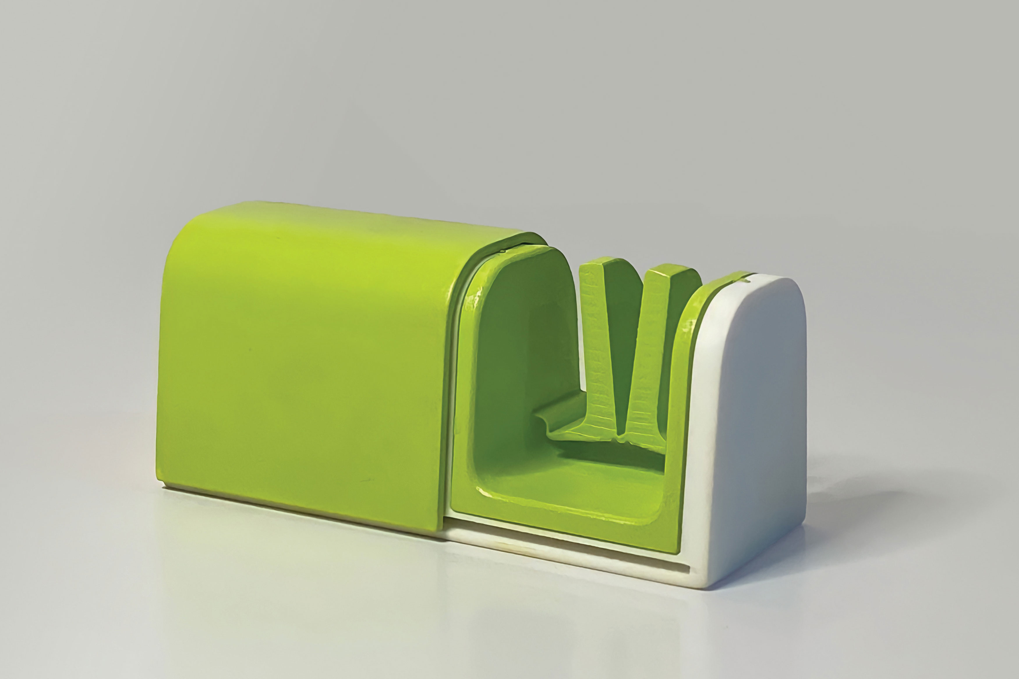 The Blade Buddy knife cleaner and sharpener ensure safety and efficiency in the kitchen. Its single-piece construction and compliant mechanism clamp down on both sides of the blade, enabling one-handed use. The sliding cover keeps sharpening and cleaning functions separate. This hygienic and durable tool promotes a cleaner workspace and reduces knife-related injuries, enhancing the overall cooking experience.