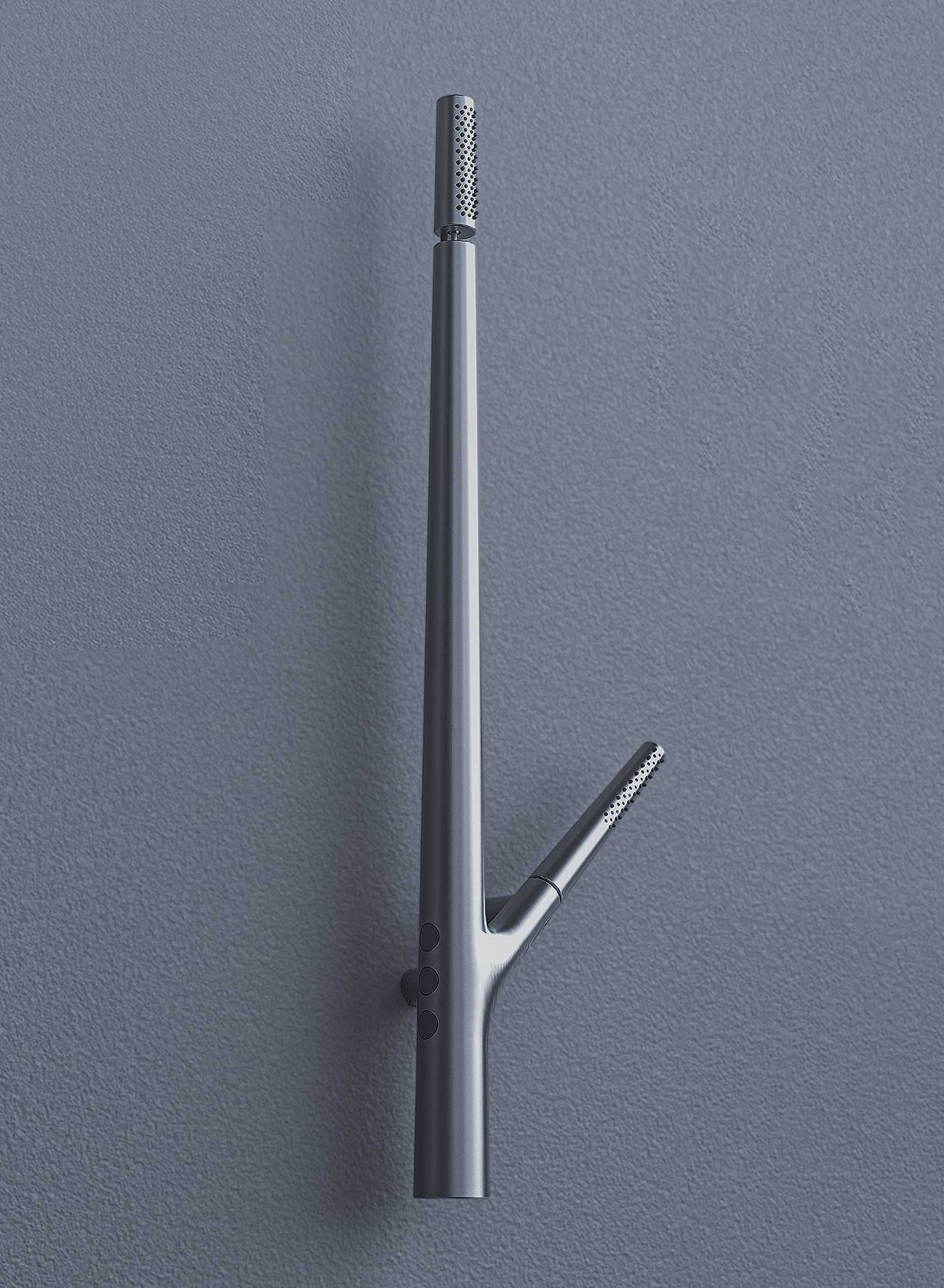 BLEND seamlessly merges nature and technology in an exquisite shower system. Its organic design, featuring a swivel head main outlet and a forked handheld showerhead resembling tree branches, offers a serene shower experience. Intelligent temperature control and water-saving features enhance comfort while promoting eco-consciousness, making it perfect for urbanites seeking simplicity and a connection with nature.