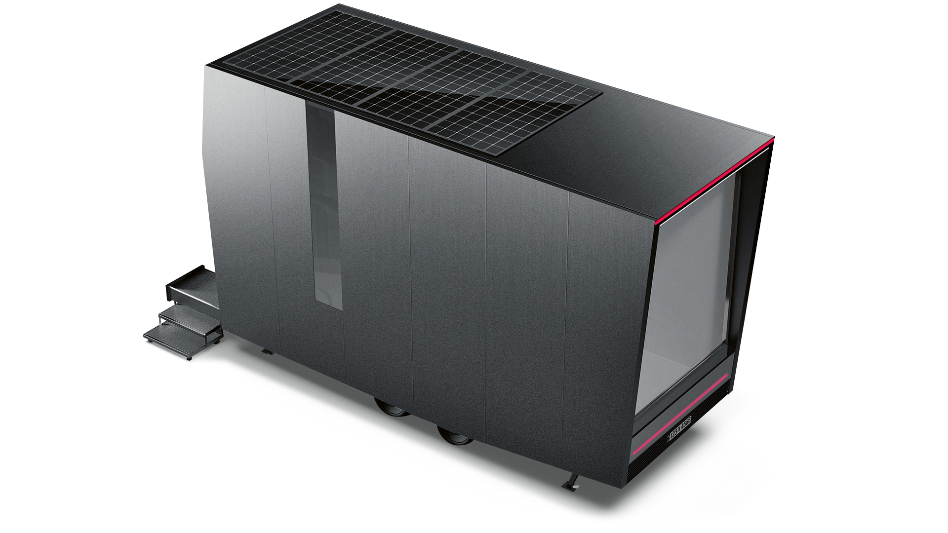 Bon Voyage emerged from the idea of blurring the boundaries between living space and appliances. The result is a mobile, adaptable living unit of about 20 sqm, designed in an open two-storey construction. The use of space is optimised through diagonal corridors, ergonomic stairs and built-in structures. Bon Voyage is equipped with a heating and air conditioning system, outdoor-friendly appliances, security systems and IoT products, all of whose energy consumption is reduced by solar modules and an energy storage system.