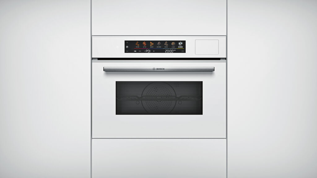 The BOSCH Series 6 Steam Oven is defined by its clean horizontal lines and precise edges. The door can be opened either manually or automatically by touching a capacitive button. The clear touch display with coloured pictograms intuitively guides the user through the operation and facilitates the selection of the preset programmes. The appliance, available in black and white, enables healthy steam cooking and also supports other cooking methods such as hot air frying or grilling.