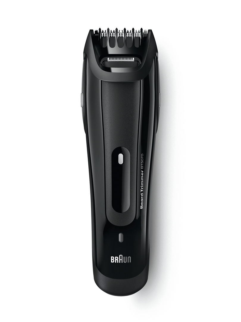 As precision is a main criterion for a beard trimmer, an adjustment wheel on the comb affords length settings in 0.5 mm steps, from 0.5 to 10 mm. The three-dimensional frame design increases its stability. A polished glossy surface causes the device to smoothly glide over the skin. The rubberised grip enables precise and comfortable handling. Thanks to the waterproof housing, the product can be easily cleaned under running water.