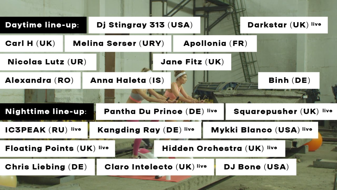 Although Ukraine’s electronic music scene is flourishing with plenty of new pinpoint events taking place every single month, there is only one firmly established name, the Brave! Factory Festival. Featuring a unique line-up that unites musicians, artists and music lovers from all over the world, the 48-hour festival turns the entire venue of an abandoned factory into one pumping organism. This symbolism is also used in the videos of an advertising campaign. Various areas in the factory serve as stages for common life situations, such as shopping at a grocery store, dining at a fine restaurant or training on an indoor bike in a fitness centre. Placed into the scenery of the abandoned factory like alien objects, they bring the factory back to life. And as if this were not enough contrast and irritation already, the characters featuring in the commercials look and behave quite normal on the outside, but they all speak a fantasy language that is made up entirely of the DJ and artist names from the festival line-up.