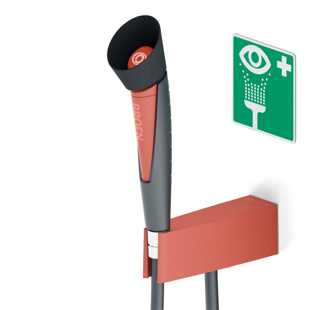 The Broen hand-held eye shower has been developed especially for emergency situations in modern laboratories and industrial environments. Grasping the eye shower firmly activates soft jets of water, which provide optimum flushing of the eyes. The consistent use of plastics has produced a hand-held shower that is both light and well-balanced.