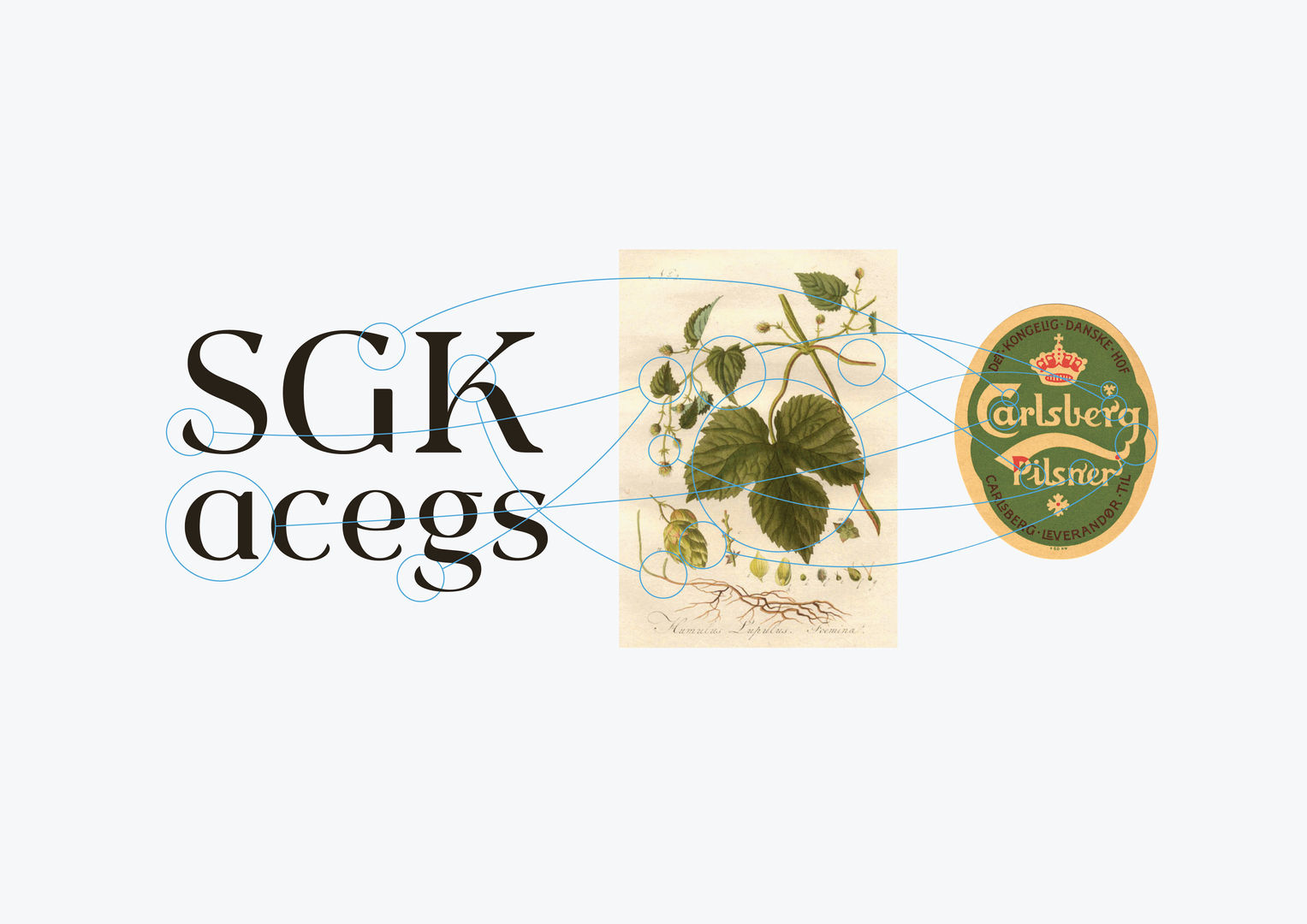 The Carlsberg brand has been associated with the symbol of the elephant ever since the development of the original label in 1904. The new visual identity of the Carlsberg Foundation reawakens the original source of inspiration employed by designer Thorvald Bindesbøll back then: the hop plant. Illustrating the basic characteristics of this plant, the new label and custom typeface thus place emphasis on the main ingredient in beer brewing. The new design therefore ties in with the original label and conveys the sustained relevance of Carlsberg’s historical role in beer brewing.