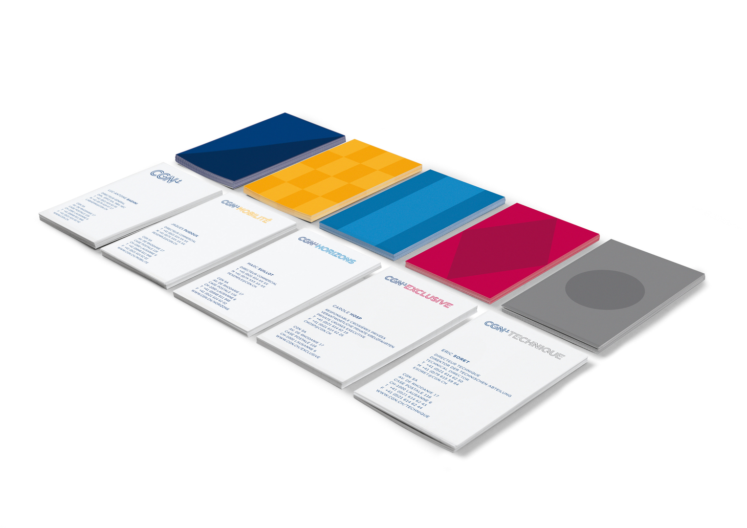 The new corporate design of CGN aims to strengthen and standardise the identity of the Lake Geneva navigation company. The realisation of the relaunch was preceded by a comprehensive market analysis. Based on the current brand fundamentals, a logo which still displays the brand’s historic anchor was developed. In addition, four sub-brands were identified, each incorporating in its name both the initials CGN and a second term defining its specific offer. The typography, which all brands have in common, is inspired by the marine world.
