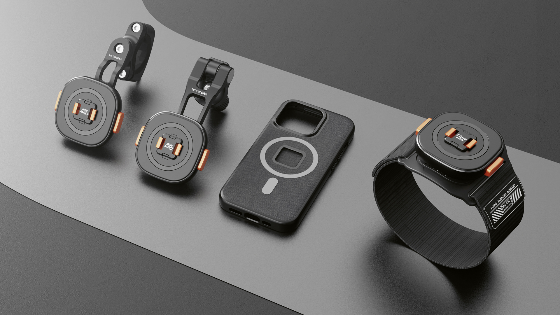 During sporting activities, the CLAW MINI Sports Series keeps the mobile phone stable and secure on the bike or wrist, while being minimalist and appealingly designed.