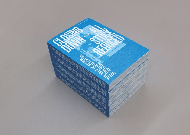 “Closing Down – All Stock Reduced” is based on the thesis of sociologist and consume researcher George Ritzer, who, aside from the idea of the “McDonaldization of Society”, coined also the sociological term of “Nothing”. In this work the artefacts of the consumer society are seen as impetus behind the phenomena of the “Globalization of Nothing”. The focus is on advertising worlds, which are situated in the urban area, such as billboards, signage systems and shop front signs in European metropolises. The monochrome and consequent design of the work underlines its concerns regarding the content. It contains extensive picture galleries and interviews with experts in the fields of architecture and visual communication.