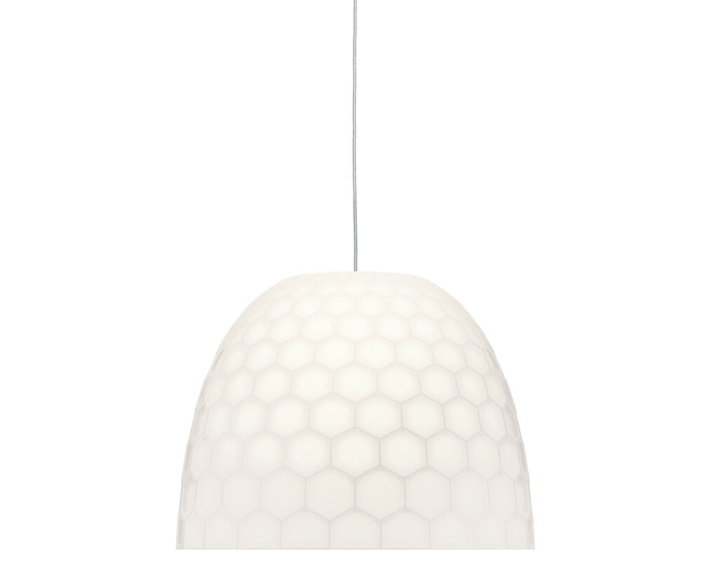 Inspired by a honeycomb structure, this pendant luminaire evokes positive emotions. A formally self-contained yet also functional design.