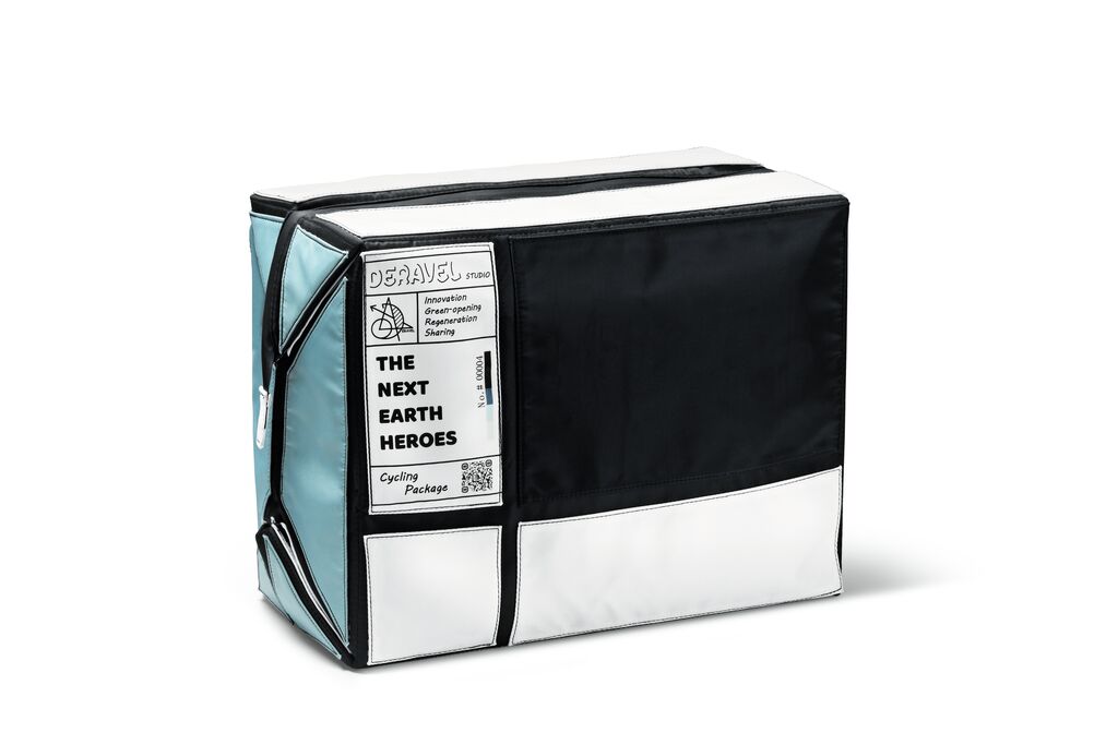 Derived Resource aims to solve the issue of increasing packaging waste and offer courier services a sustainable alternative. The fabric of the transport packaging is made of recycled materials, provides secure product protection and a long service life. Once goods have been delivered, the recipient returns the packaging to the courier for reuse. An associated app makes it possible to track the packages in real time and manage delivery.