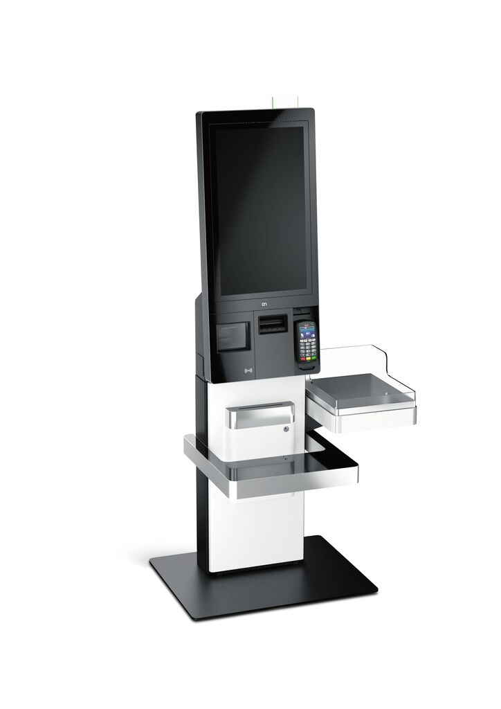 The self-service checkouts of the EASY series are based on a modular system in which components can be flexibly combined to adapt the checkouts to the concept of the respective retail environment. The eXpress Max can be attached to walls or be used with a base. Equipped with an interactive 27” touchscreen, the device is geared towards digital payment methods but also offers the option of being fitted with a cash insert and a security scale.