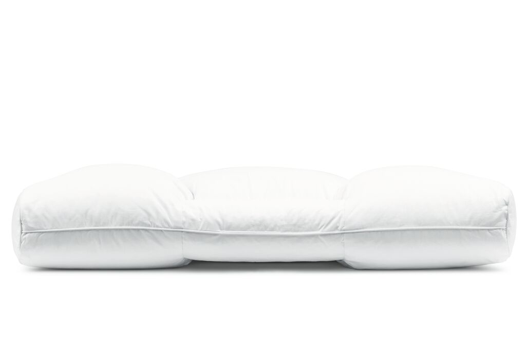 Dongfangfu has three distinct levels separated into three distinct zones and is based on an ergonomic design. It ensures a comfortable sleeping position regardless of whether the user is a front-, back- or side-sleeper. The delicate cover is made of Japanese cotton, while the filling is composed of several different materials. For example, one pillow section is made of soft goose down and feathers; another section is filled with elastic natural latex that supports the head and cervical spine.