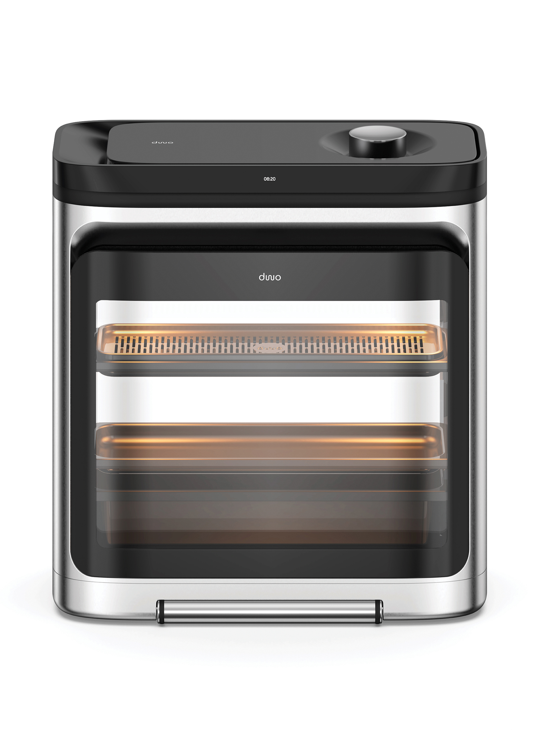 DWO is an innovative oven designed to optimise kitchen space and enhance culinary efficiency. It features versatile convection trays and a double-door system, enabling usage in both upright and horizontal positions. Its compact and stylish form factor fits seamlessly into any kitchen layout. In its upright position, DWO functions as a multi-cooker and multi-layer oven, facilitating the preparation of complete meals more efficiently. Its minimal footprint reduces countertop clutter while providing access to various cooking methods and recipes. When additional oven capacity is required for large pizzas or baking, DWO easily tilts horizontally to expand the cooking space without the need for extra appliances or complex mechanisms. DWO’s convection technology, with a triple fan and efficient heating system, ensures uniform airflow, delivering superior cooking results. When upright, it offers an additional heating surface at the bottom for moisture-rich cooking that is ideal for rice or pasta. The steam generated in this mode enhances the flavour and texture of food on the upper convection trays. For ease of use, DWO includes a single navigation knob. Integrated side handles and a front roller facilitate tilting for a better user experience. Red Dot Award: Design Concept | Concept | Kitchen Appliances and Accessories