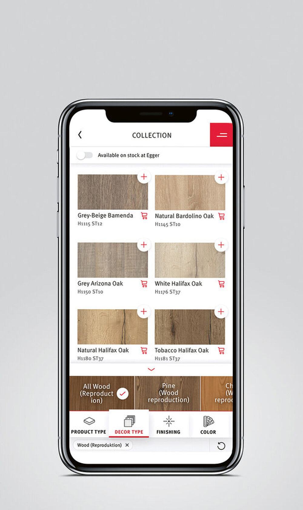 EGGER produces wood-based materials in various decor variants. This app has been developed to complement the company’s physical catalogues and decor samples as a smart marketing tool. Aimed to facilitate activities for customers when picking suitable decor for their projects or finding information about the availability of the selected materials, the app offers intuitive digital navigation through the entire product range. This includes 3D visuals, real-time information and project folders for customer presentations. The scanning of order numbers in the catalogue opens up direct access to all information, and samples are ordered with just one tap.