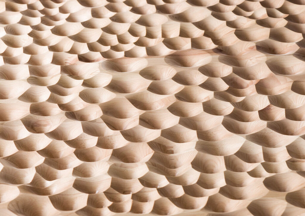 Thanks to its inner construction, this hybrid solution efficiently reduces noise levels while the shape of the exterior surface eliminates echoes. The EHØ acoustic panels therefore enable clear and effortless verbal communication in offices, lobbies, cafes and restaurants. The natural wood finish will blend into a range of different interiors. The easy-care panels are simple to install. The three-dimensional surface pattern allows for rotation of 90 degrees, which gives this system a versatile, interesting appearance.