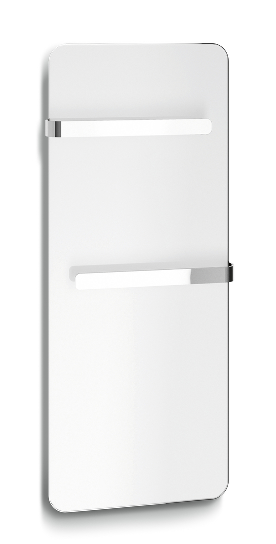 The design of the Elveo radiator is modelled on current smartphone design. The electrically operated infrared radiator with its distinctive metal frame and elegant gleaming glass front in black or white can be installed either vertically or horizontally, and is available as towel warmer or room heater. Elveo heats using radiant heat, which, similar to sun rays, directly heats the human body and is perceived as very pleasant.