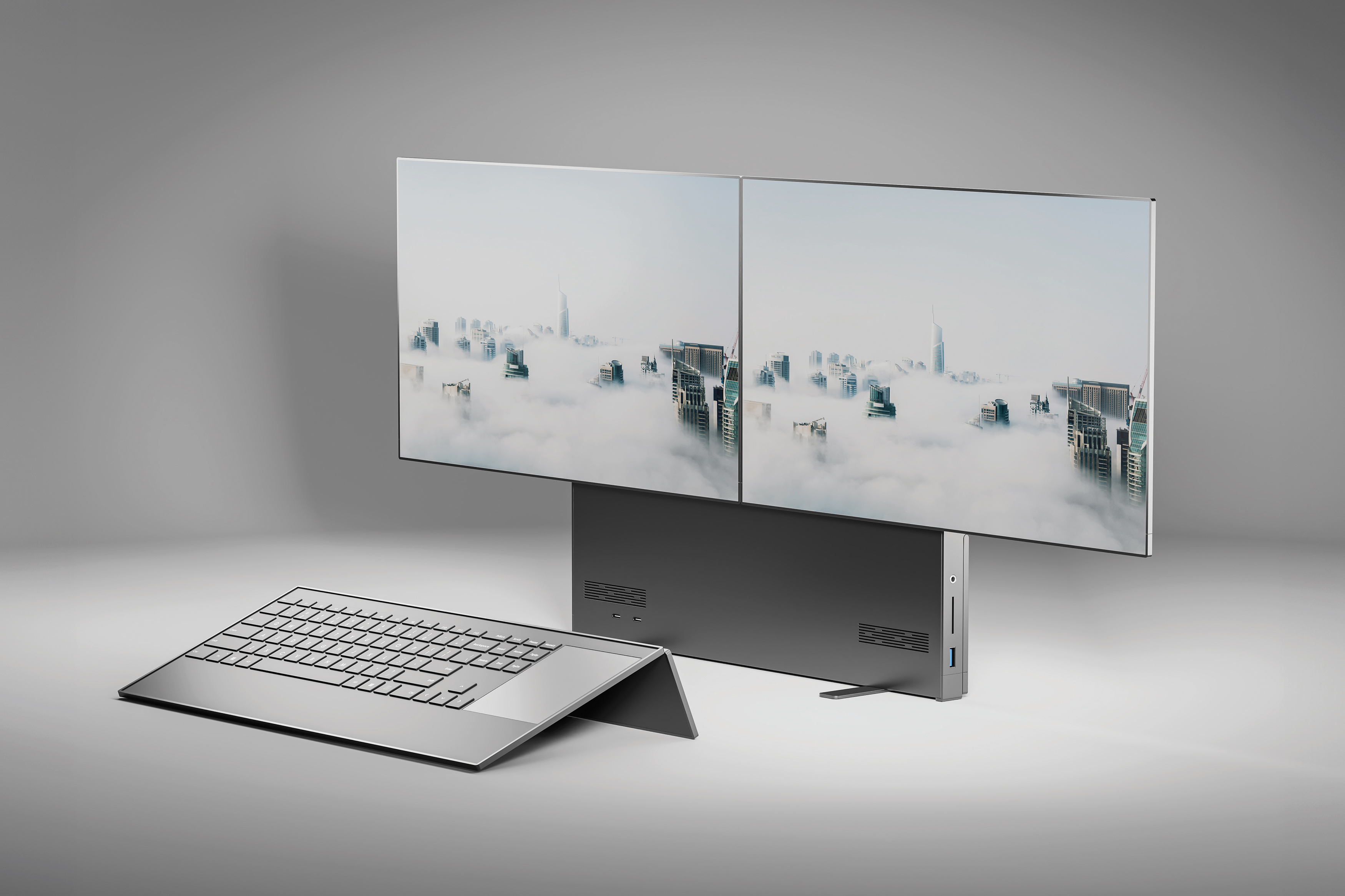 EMBER LAPTOP addresses modern remote work requirements with a foldable dual-screen design and detachable keyboard for improved ergonomics. Featuring a VCA-TLHP cooling system, it supports desktop-grade CPUs and GPUs, delivering near-desktop performance. Its modular design allows easy upgrades and component reuse, ensuring longevity and sustainability. The sleek, low-profile design enhances portability without compromising on power or functionality.