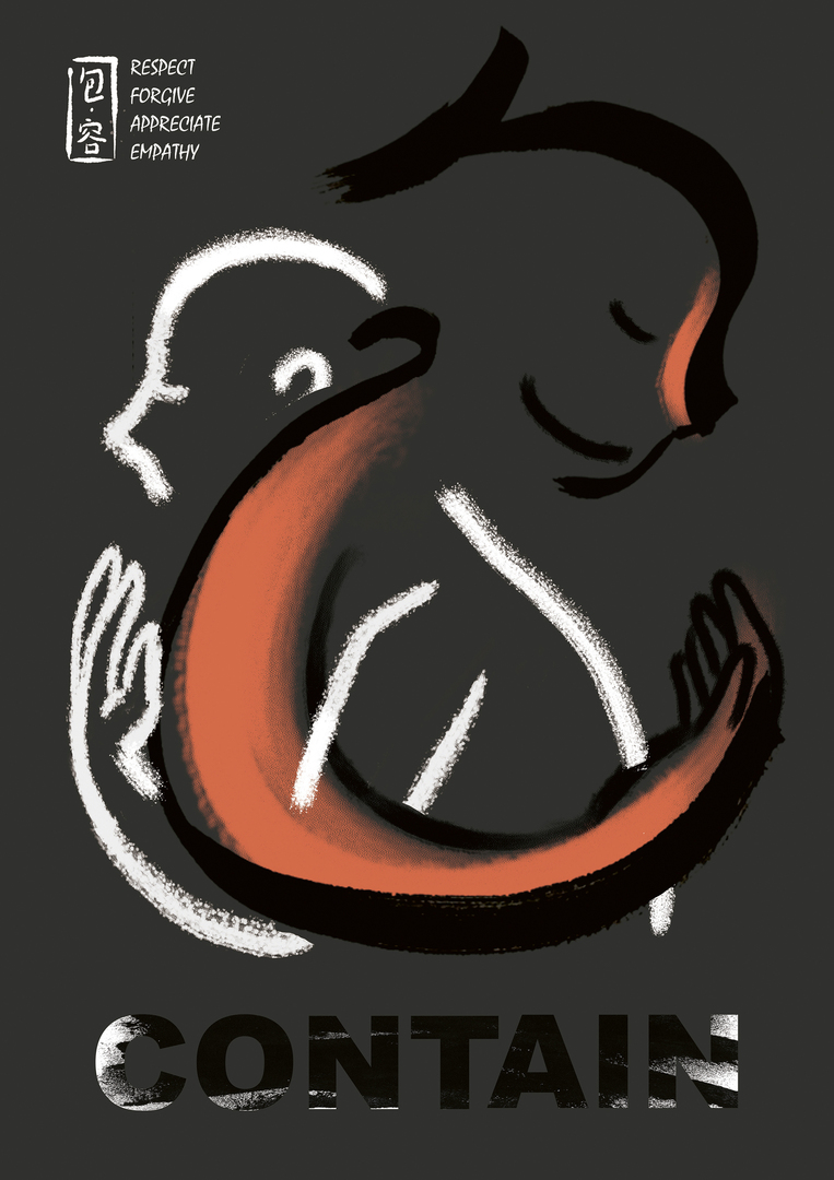 This poster series convinces with a distinctive minimalist imagery that communicates the notions of empathy, security and tolerance. The underlying message of how to counteract discrimination and hatred is expressed in the reduced and subtly designed illustrations and complemented by simple word messages in a highly harmonious and convincing manner.