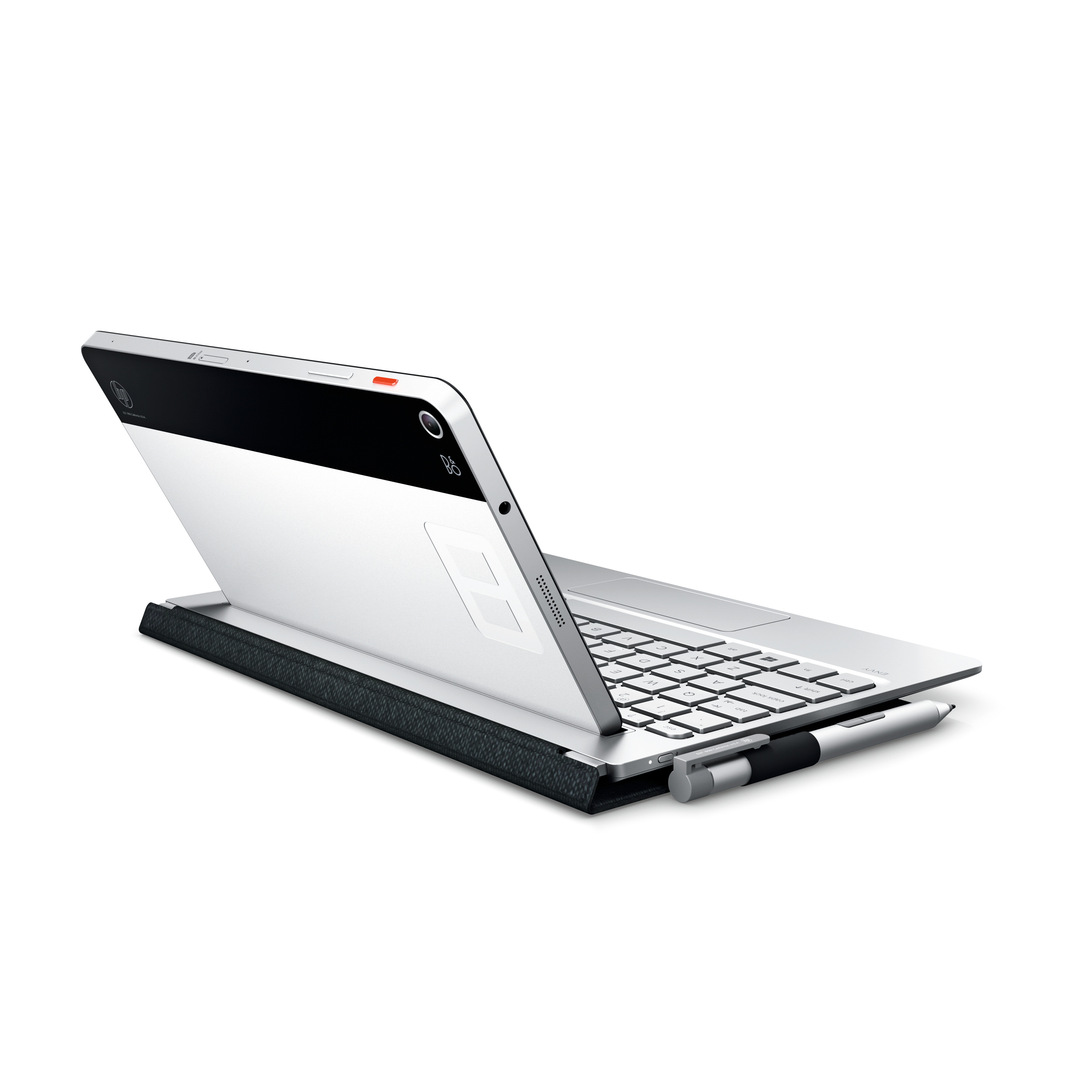 The approach pursued in developing the Envy 8 Note was to turn an 8” tablet into a work tool for maximum productivity. One primary challenge with such a reduced display size relates to input via keyboard – be it directly on the screen or using a small, integrated keypad. The solution is a keyboard dock into which the tablet is easily inserted. The tablet is held upright and is ready for input. A stylus serves as additional input device that can be attached to the keyboard for safekeeping.