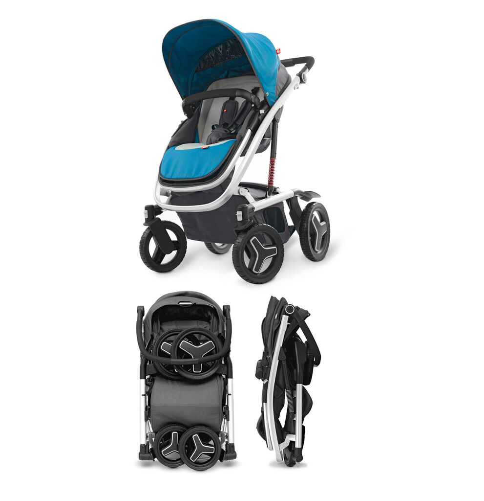 The bold, functional and robust EPOC baby stroller is so flexible and compact that its extra spacious seat easily accommodates a child with thick clothing in winter, yet is still narrow enough for small lift doors. It folds into a neat package thanks to a specially designed mechanism that allows the wheels to fold under the chassis. The seat converts into a removable carrycot, saving storage space – both at home and for transportation.