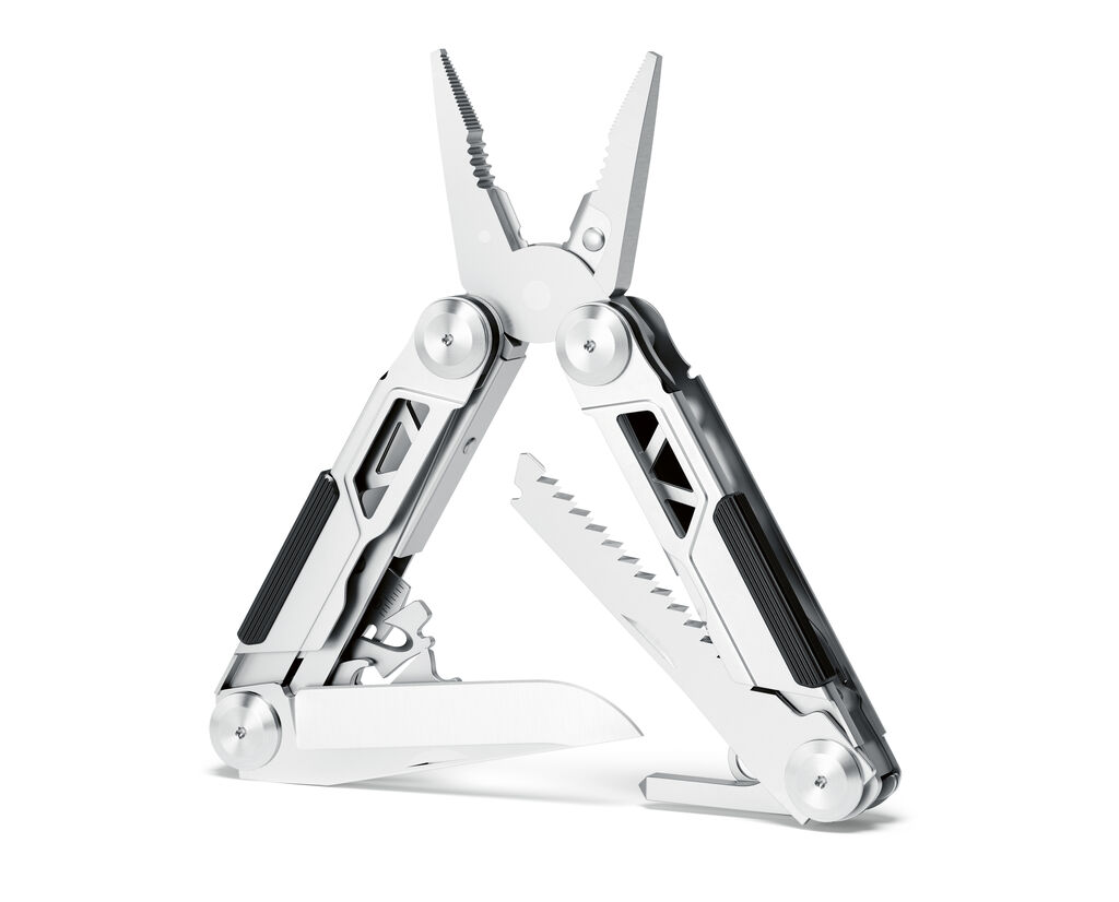 The EXOTOOL 24+ is a versatile multi-tool with a clear design, well-thought-out mechanics and high suitability for everyday use. Functions such as pliers, wire cutter, bit holder, saw and knife with safety lock, as well as openers for cans, bottles and packages, cover a wide range of applications. The individual tools can also be folded out when the tool is closed, enabling safe and intuitive operation. The integrated belt clip ensures quick access when on the go.